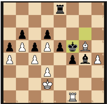 Met juist spel is het remise. Maar Michel liet de koning via g4 binnen komen, kon de pionnen niet stoppen en liet sportief de matzetten uitvoeren met de pionnen op e2 en f2. Leuke pot tegen Wim van de Vondevoort, maar wel verloren.