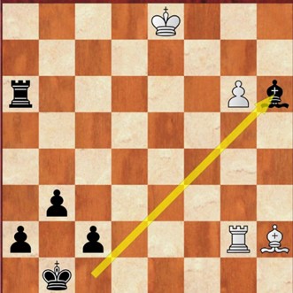 Niet zo moeilijk te zien dat 24. Ta1 Kf7 25. Lh5+ .. een stuk gaat winnen.